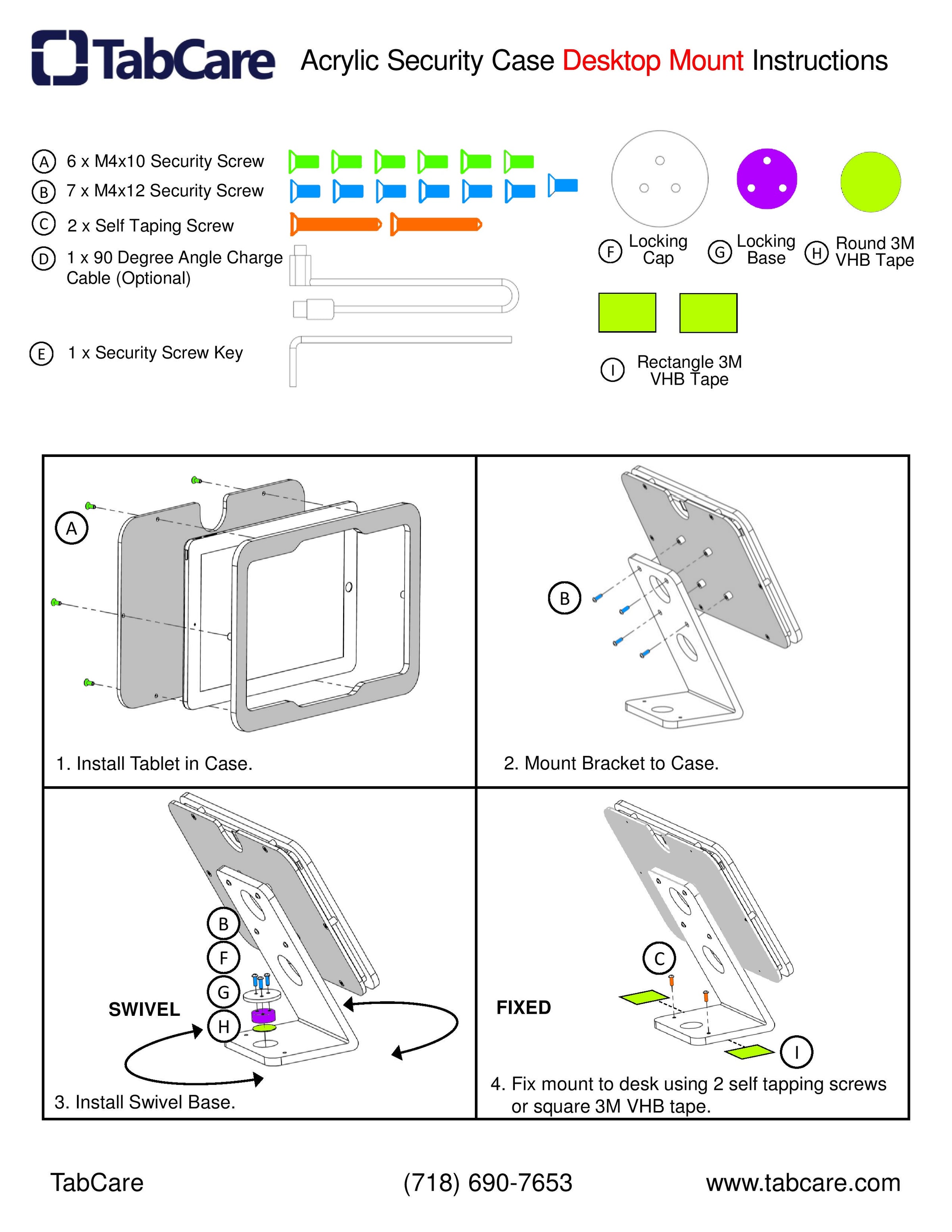Samsung Galaxy TAB A A7 A9 E S 8" 8.4" 8.7" Lite Tablet Acrylic Security Anti-Theft Security VESA Kit