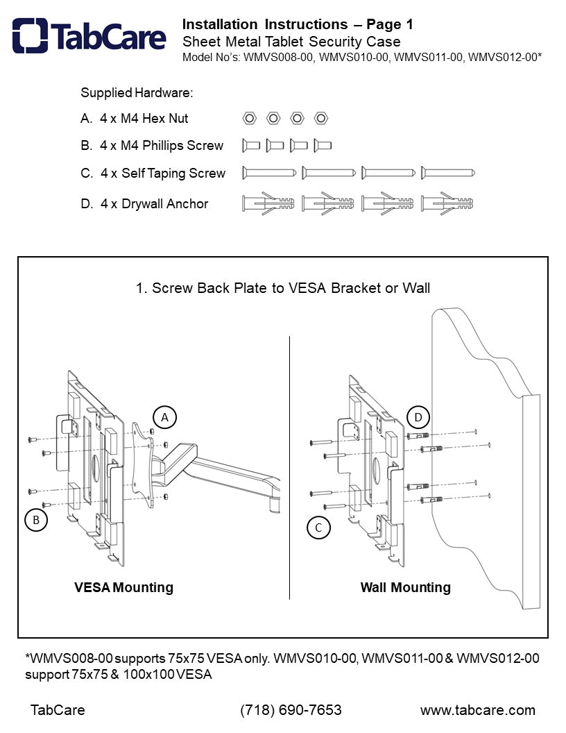 8" Metal Samsung Galaxy TAB A E S S2 8" 8.4" 8.7" Lite Tablet Security Wall Mount Enclosure VESA Ready