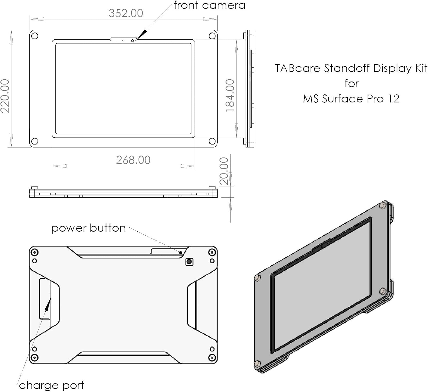 TABcare Acrylic Wall Mount Floating Frameless Display with Metal Standoff for Microsoft Surface